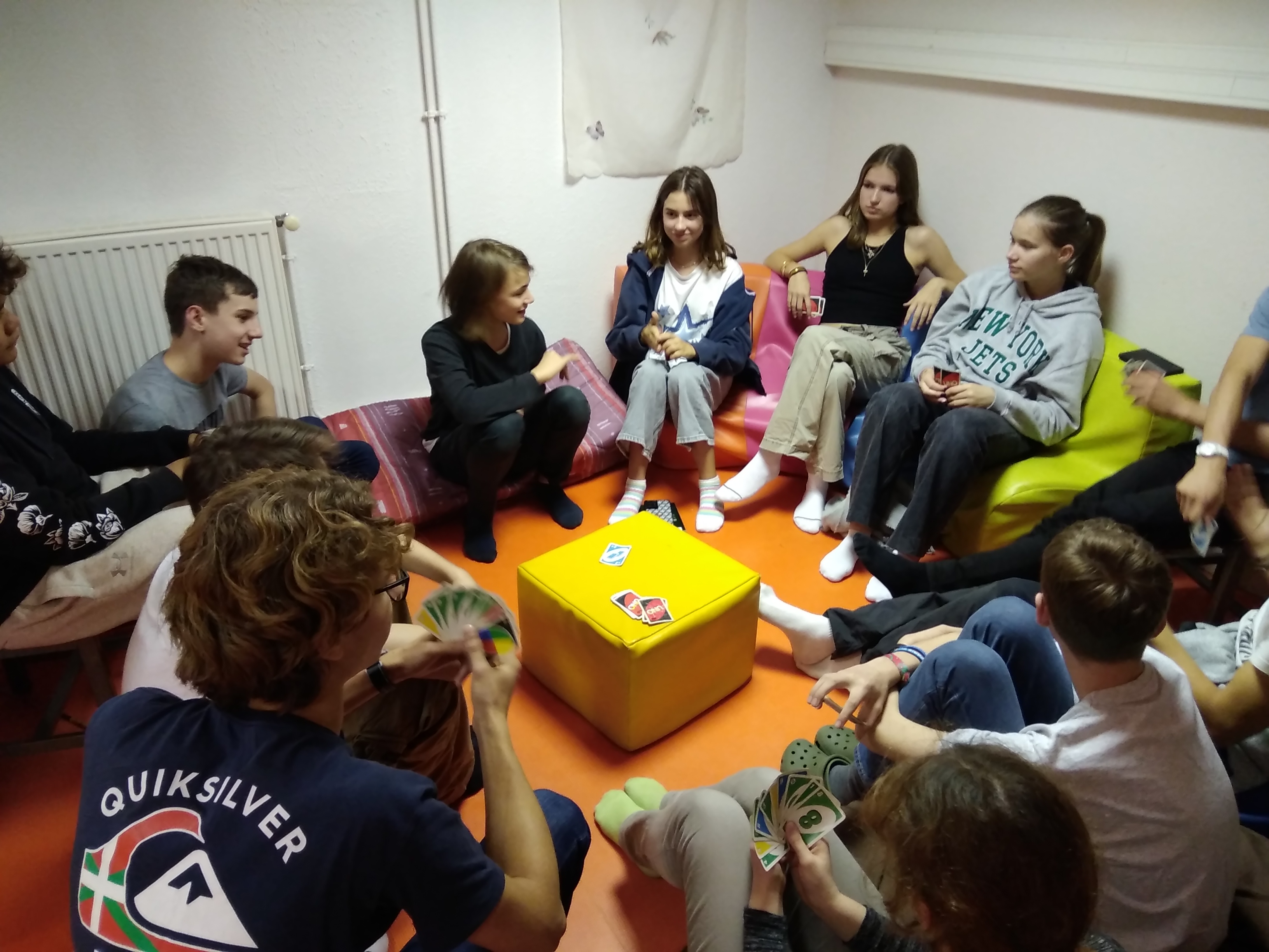 Enfin, le soir nous avons fait une Trace Maudite dans les bois. La soirée s’est terminée dans la bibliothèque à lire, faire des jeux de société, discuter ou jouer au ping-pong.