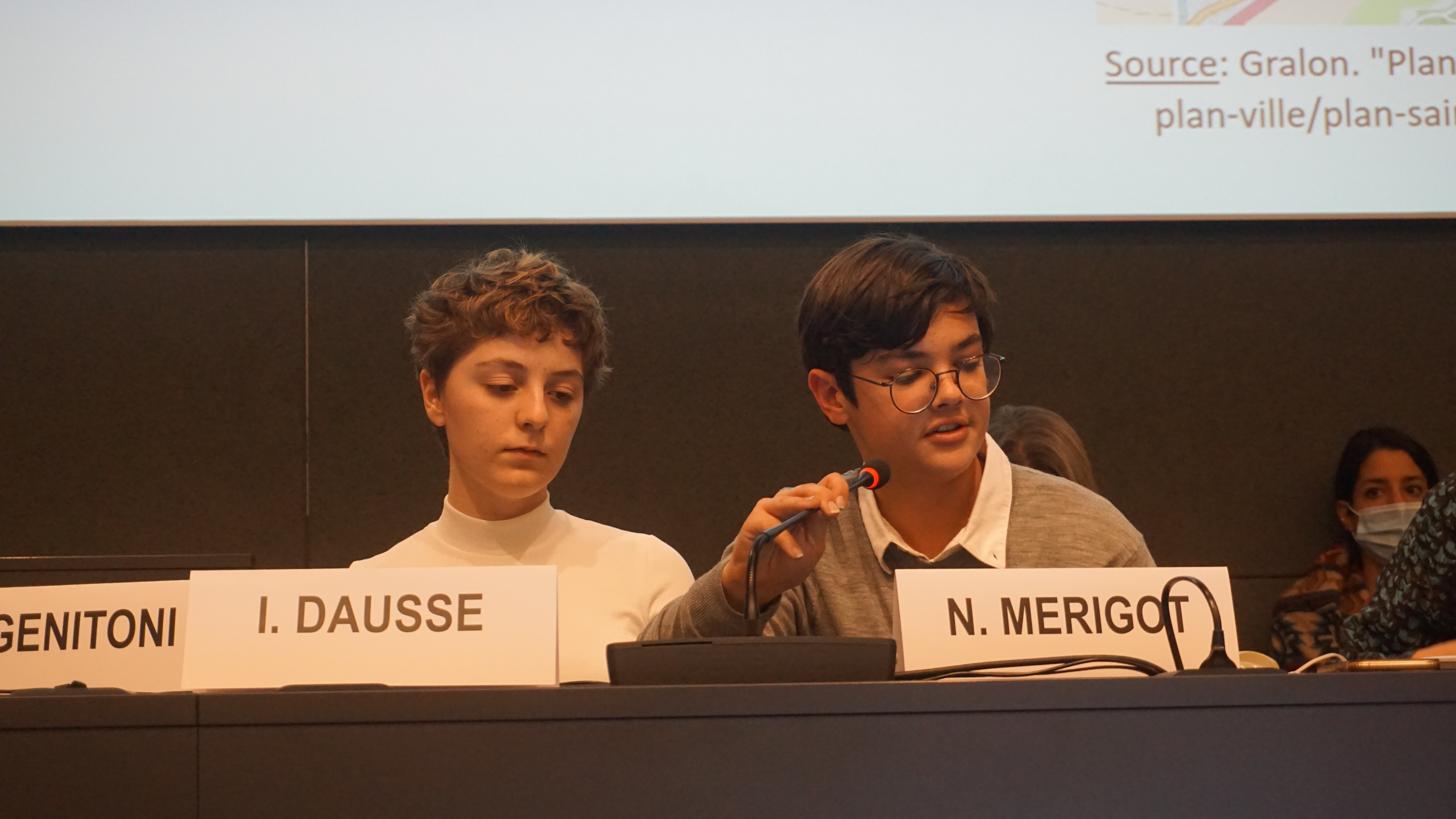 Après avoir été rassasiés, ce fut l’heure des conférences tant attendues. La nôtre (Project Based Learning) fut présidée par Thomas Egli. Malheureusement notre camarade Inès ne pouvait être parmi nous en présentiel, mais grâce à sa vidéo envoyée à temps elle fut tout de même virtuellement avec nous. Nous avons pu présenter nos projets devant l’audience (qui comptait des profils intéressants tels que l’ambassadeur du Kosovo et la fondatrice d’une organisation en faveur des sciences pour les femmes), avec laquelle nous avons ensuite pu interagir lors d’un brainstorming de l’implication des femmes dans les projets scientifiques. A l’issue de celui-ci, nous avons mis nos idées en commun à ce sujet.