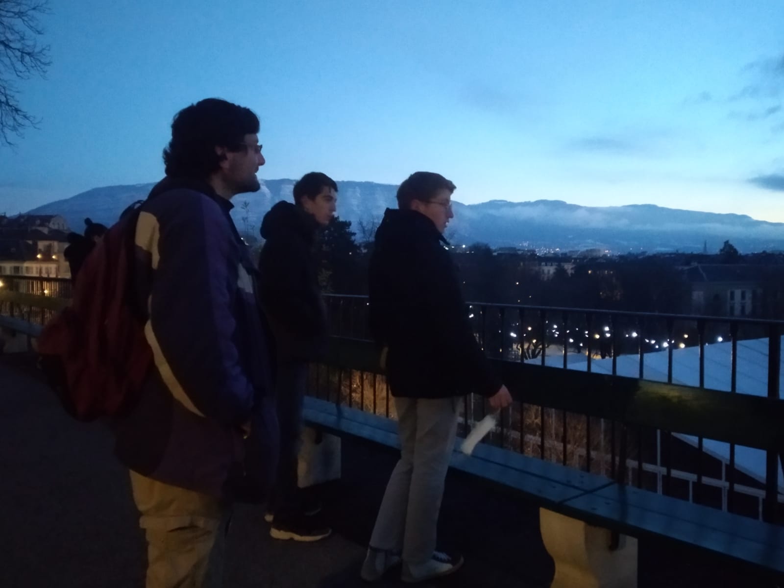 Aujourd’hui, l’ensemble du groupe est arrivé autour de 14 heures. Nous sommes donc allés chercher à manger pour ceux qui n’avaient rien prévu. Nous sommes partis faire une visite de Genève et de sa vieille ville. Nous sommes donc partis en direction du mur des réformateurs qui ont défendu Genève et le protestantisme à travers le monde entier. Nous sommes passés avant dans une fête foraine avec un marché où nous avons pris un goûter. Puis, nous nous sommes dirigés vers le lac Léman où nous avons pu voir le jet d’eau. Nous sommes entrés dans le marché de Noël où nous nous sommes baladés et avons flâné entre les allées. Après cela, nous nous sommes dirigés vers le restaurant asiatique où nous avons dégustés un canard laqué avec du riz. Enfin, nous nous sommes dirigés vers l’auberge où nous passons la nuit.